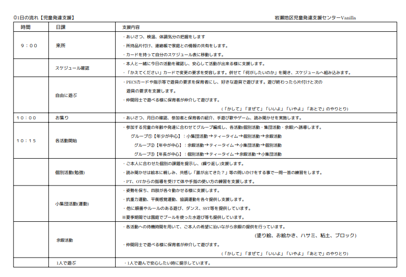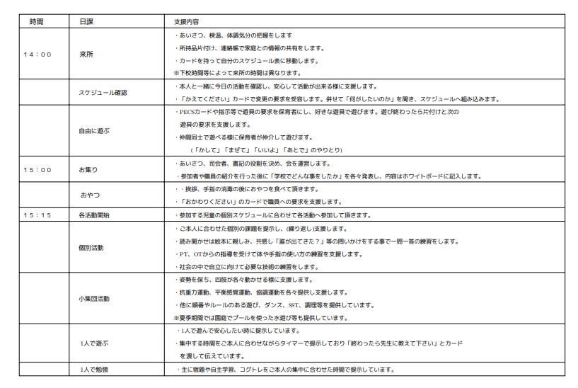 【令和7年度】支援プログラム及び日課の公表