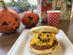 カボチャのお化けパンケーキが出来ました!