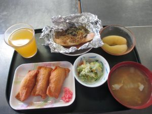 メニューは、おいなりさんに豚汁、鮭のホイル焼き‼