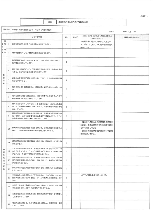 【保育所等訪問支援】R7年度事業所評価内容の公表