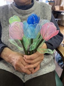 利用者の皆さんと手作りのミニブーケを作成しました!
